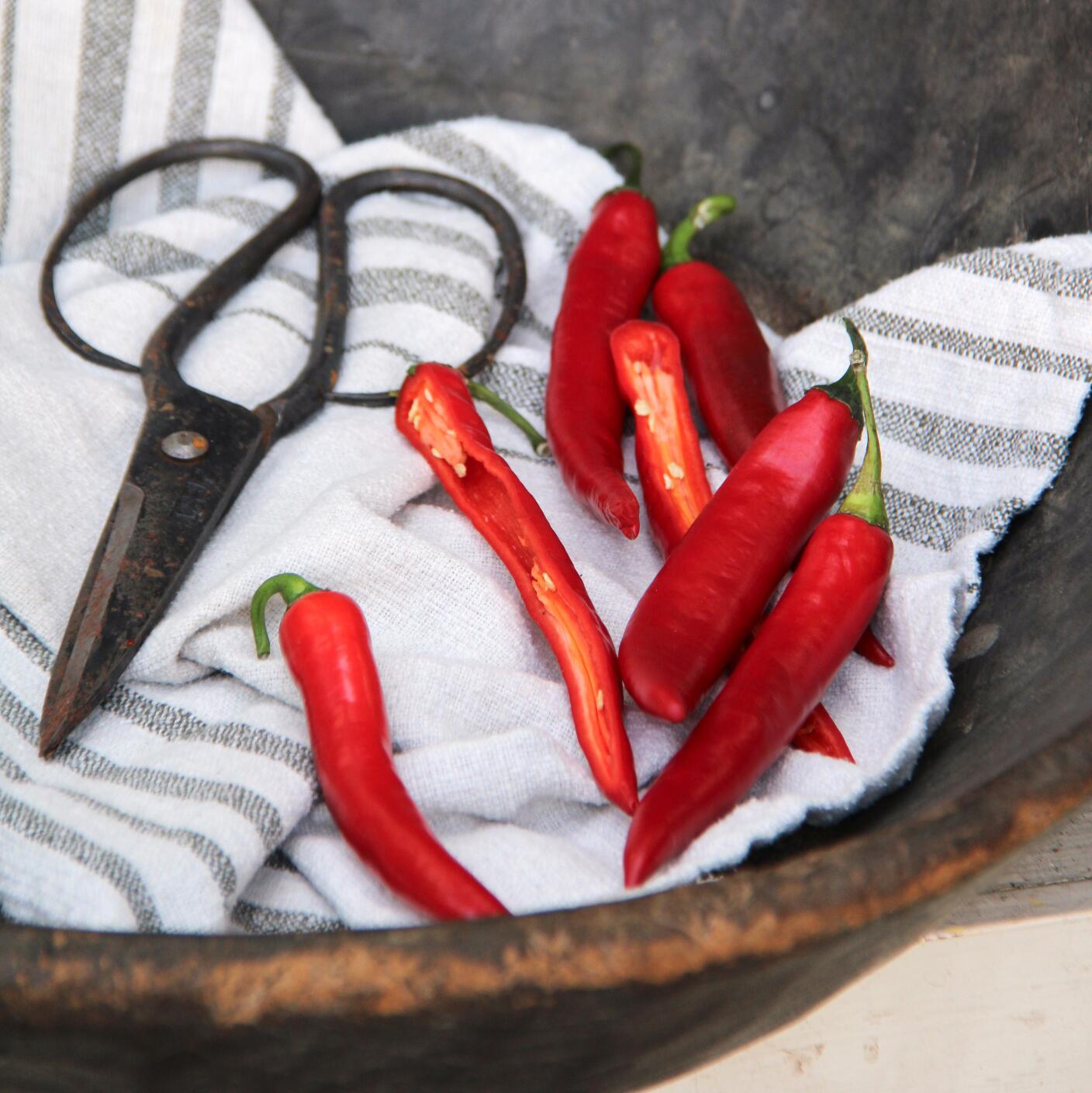 En mycket het chili, släkt med 'Dorset Naga'. Ger hetta som bara de modigaste hanterar – för dig som vill utmana smaklökarna på allvar. Har en något söt, rökig smak och en hetta som utvecklas till intensiv. Passar till sås och marinad.