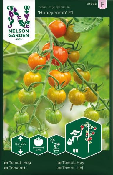 Guldorange honungssmakande tomater på vackra klasar, ger lång rik skörd.