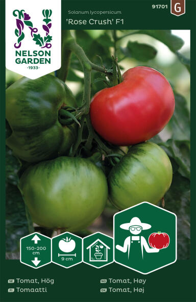 God rosaröd tomat med hög tolerans mot svampsjukdomar och väderväxlingar.