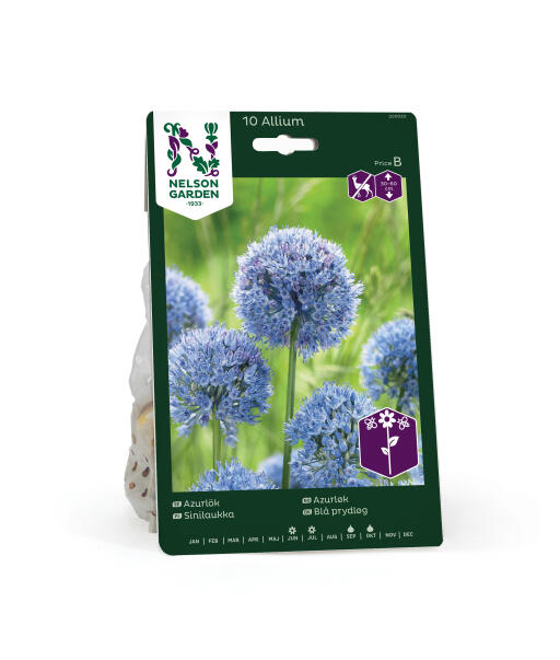 Azurlök har vackert himmelsblå blombollar som blir knappt 5 cm. Azurlöken anses vara en av de bästa blåblommande arterna och är vacker till snitt och som eternell. Anses vara mindre smaklig för rådjur, hare, kanin och sork.