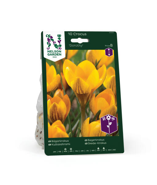 'Dorothy' är en nätt liten doftande bägarkrokus, som gärna återkommer år efter år. Blommorna är vackert gula med bruna, mörka strimmor. Lämplig sort för tidig blommning i kruka..