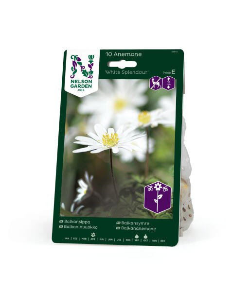 'White Splendour' har stora vackert vita blommor med svagt lilarosa utsida. Balkansippa är en riktig sötnos som påminner i utseende om vår inhemska vitsippa. Anses vara mindre smaklig för rådjur, hare, kanin och sork.