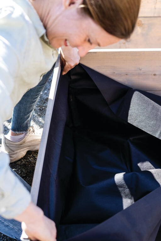 Formsydd barkduk för 2 pallkragar, staplade på varandra. Placeras inuti och förhindrar att jord läcker ut och att ogräs växer in om pallkragen står på marken. Polypropen 50g/m²