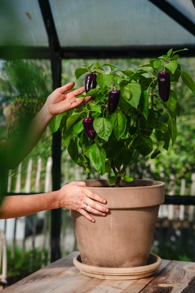 Het sort med smak av citrus. Börja skörda ca 4mån efter sådd. Förodla i såjord inomhus, med växtbelysning. Låt gro i 25°C. Ställ sedan i rumstemp. Plantera om till en per kruka i gödslad jord när plantorna kan hanteras. Tvätta händerna noga när du handskats med frukterna.