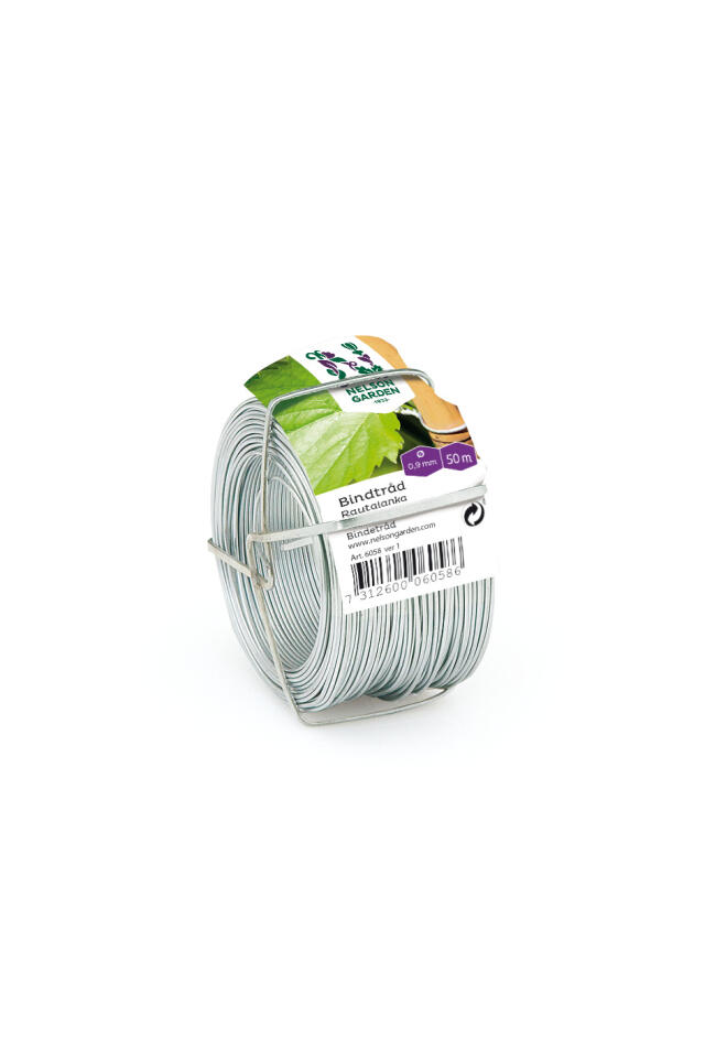 Galvaniserad ståltråd. Diameter 0,9 mm, längd 50 m.