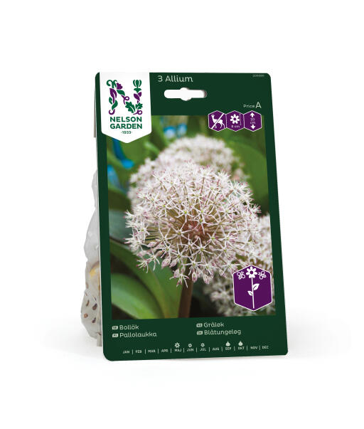 Luftiga blombollar som kan bli upp till 15 cm stora i en ljuvlig blekrosa färg. Bladen är breda och vackert grågröna. En av de bästa allium-arterna att plantera i kruka. Anses vara mindre smaklig för rådjur, hare, kanin och sork.