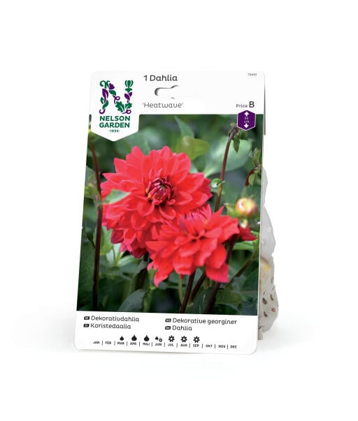 En eldigt röd dahlia som sänder en värmevåg genom frusna, svenska hjärtan. Rödare än så här kan det knappast bli och rött är ju ändå alltid rätt. En kompakt växande sort som passar såväl i rabatt som kruka och till snitt.