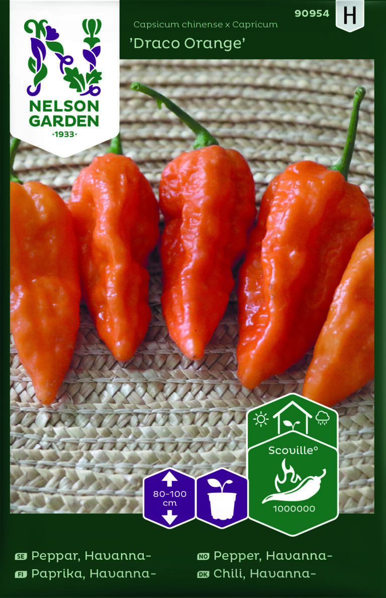 En het chili med härligt orange färg och knubbiga, knögliga frukter. Sorten är en korsning mellan Capsicum chinense och Capsicum frutescens. God smak med en tydlig styrka. Tvätta händerna ordentligt direkt efter kontakt med frukterna. Odlas bäst i soligt varmt växthus. Kan behöva växtstöd. Gödsla och vattna regelbundet.