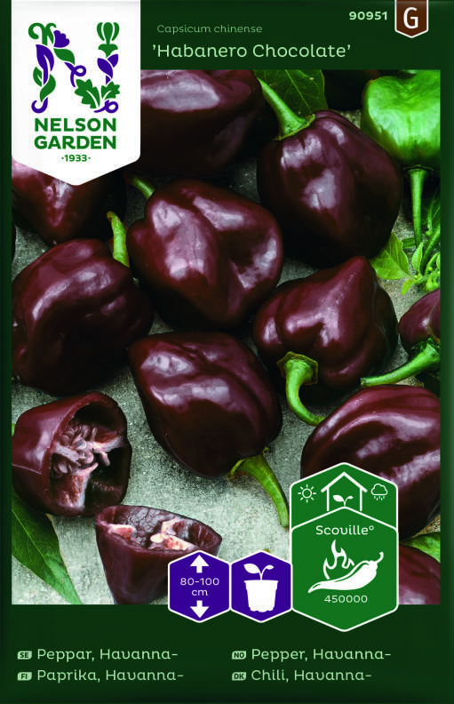 Dekorativt lyktformade chokladbruna chilifrukter som växlar färg från grönt till brunt när de mognar. Smaken är god och fruktig, aningen rökig och med tydlig styrka. Tvätta händerna ordentligt direkt efter kontakt med frukterna. Odlas bäst i soligt varmt växthus. Gödsla och vattna regelbundet.