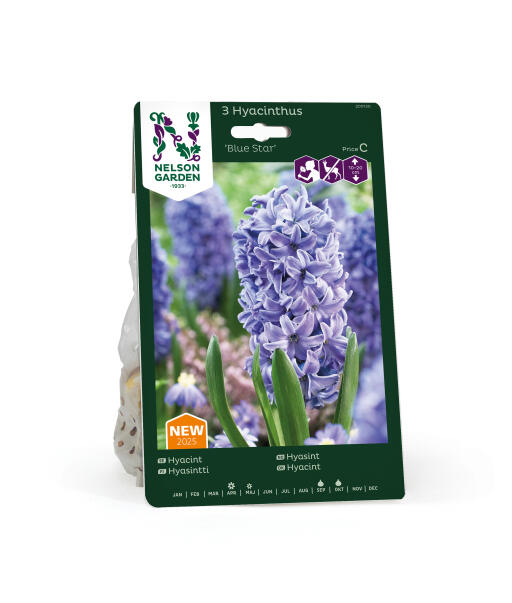 Hyacinten är en ljuvligt doftande lökväxt. Sorten 'Blue Star' är en fantastiskt doftande stor hyacint med intensivt blå blommor på stadig stjälk. Hyacinter passar fint i rabatten bland buskar och andra perenner men är även trevliga att plantera i krukor där du närmare kan känna doften.