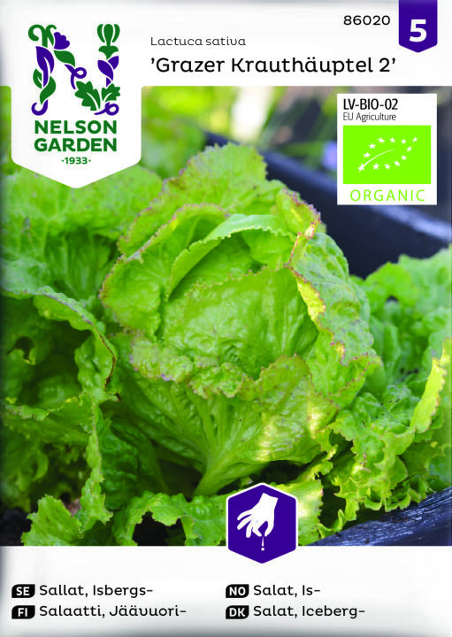 Ekologiskt frö. Fin sort som ger stora kompakta huvuden med svagt rödkantade blad. Skörda hela plantor efter hand. För kontinuerlig tillgång av sallat bör sådden upprepas varannan vecka. Går ej i blom så lätt.
