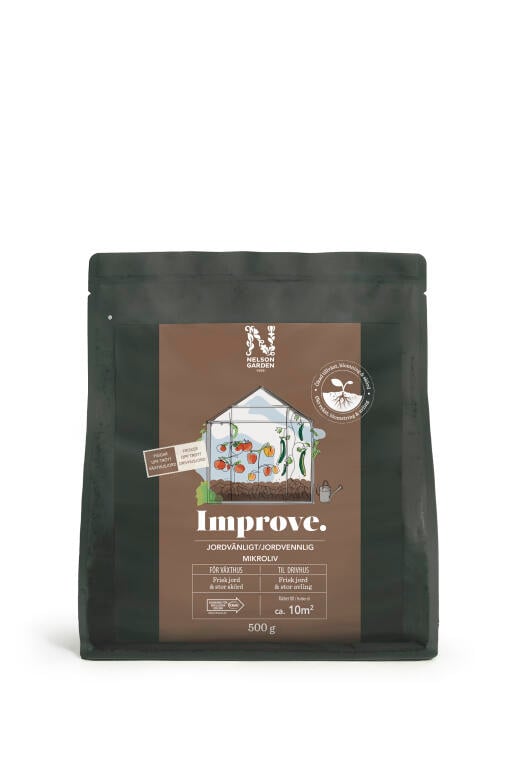 Improve Jordvänligt mikroliv piggar upp utarmad växthusjord och återställer jordhälsan i intensivt brukade odlingsmiljöer. Innehåller noggrant utvalda mikroorganismer som berikar jorden med nyttigt mikroliv och ger rötterna näring. Genom att stötta jordens naturliga återhämtning skapas en frisk och näringsrik jordmiljö som gynnar både tillväxt och skörd.