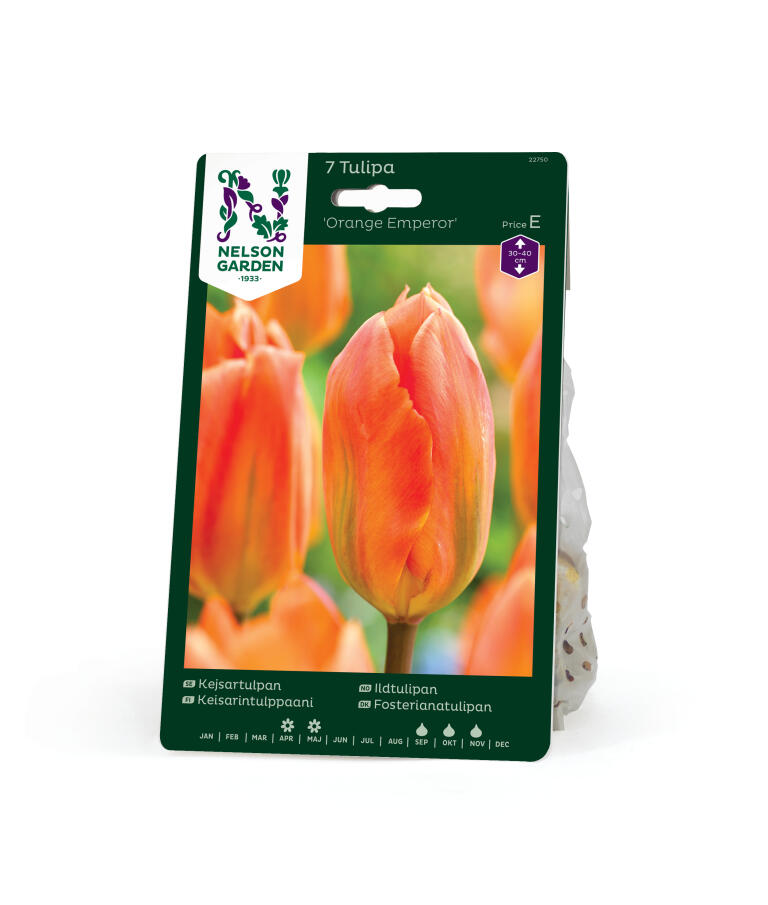 'Orange Emperor's stora avlånga blommor är lysande morotsorange med gul bas. Passar förutom i rabatten även bland buskar. Sorten tillhör Fosteriana-gruppen och kan bli långlivad i trädgården. Mycket bra som snittblommor.