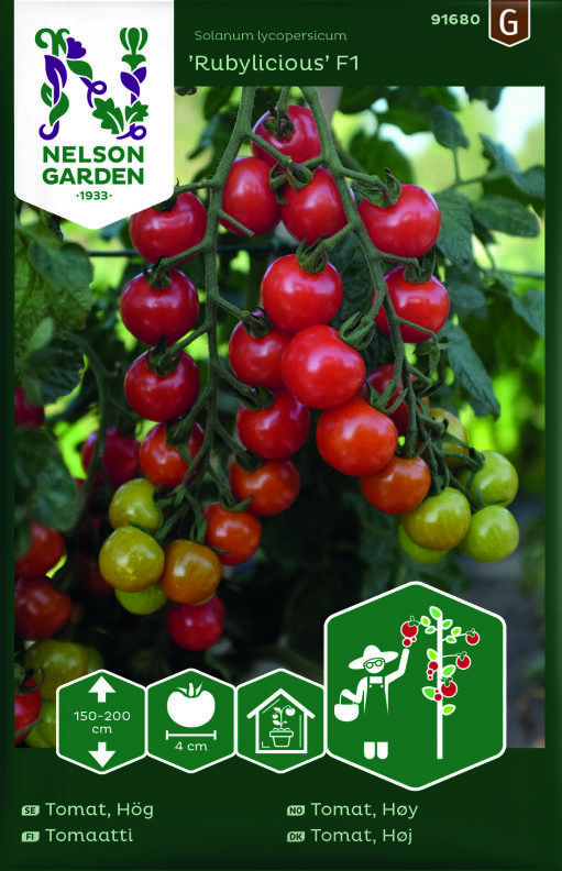 Rubylicious' F1 är en av de bästa körsbärstomatsorterna. Smaken är kraftfull, både starkt söt och starkt syrlig. Frukterna är orangeröda och sitter på rad på klasen.