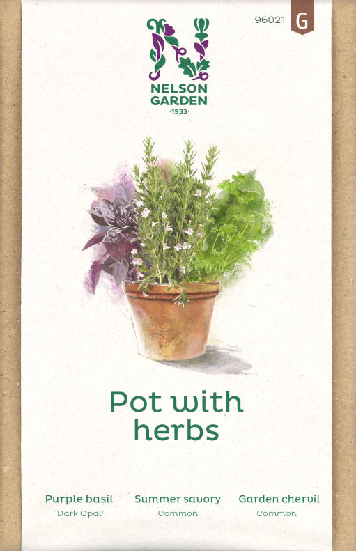 Tre sorter för en generös mix – dansk körvel, purpurbasilikan 'Dark Opal' och sommarkyndel! Odla en alldeles egen örtagård, eller varför inte i en kruka tillsammans med ätliga blommor?
