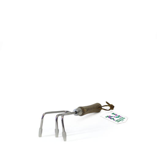 Handkultivator av rostfritt stål och med handtag av ask. Används vid bearbetning av jorden. Ett praktiskt handredskap av hög kvalitet. L 28 cm.