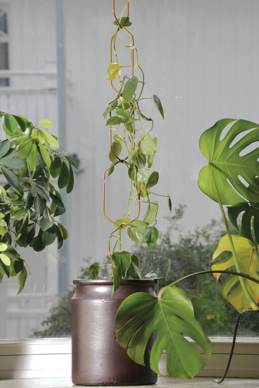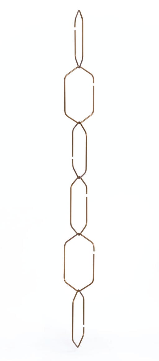 Mässingsfärgad spaljé för klätterväxter. Valfritt antal av de 6 hexagonformade länkarna sammanfogas till en kedja. Kan fästas på t.ex. gardinstång. Total längd 108 cm.