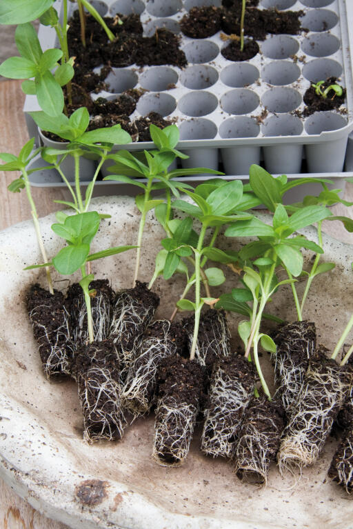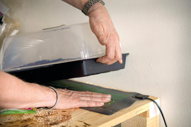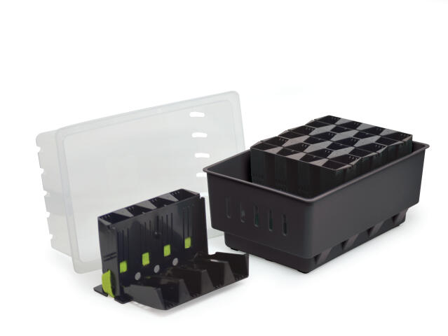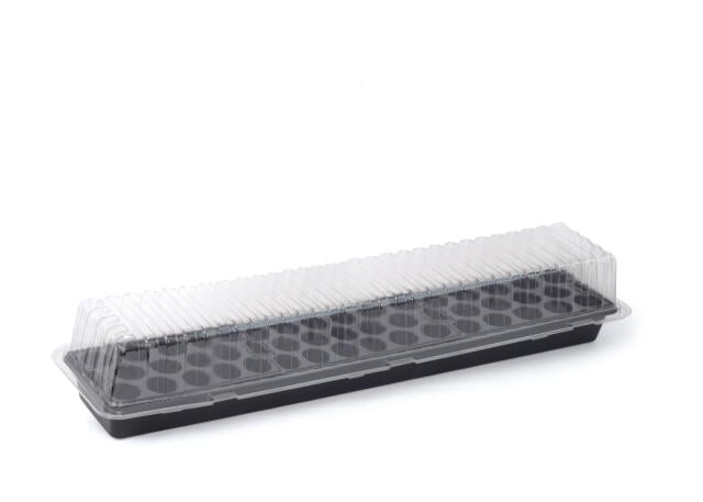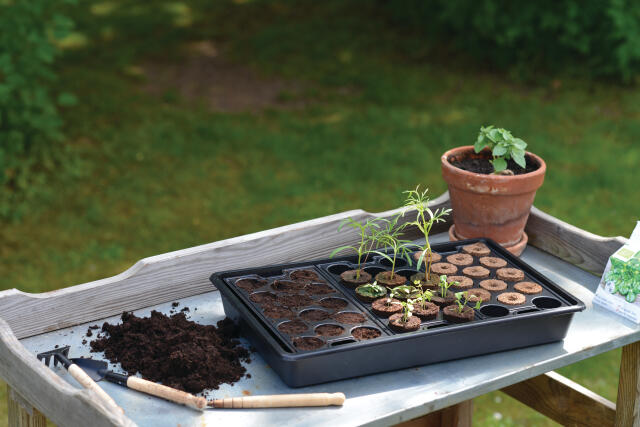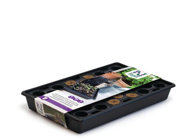 1.) Fyll pluggboxen med såjord och följ instruktionerna på fröpåsen. 2.) På med locket och håll sådden fuktig. Låt pluggboxen stå under belysning. 3.) Låt tomatplantan växa i pluggboxen tills du ser att det börjar växa fram ytterligare ett bladpar (karaktärsbladen) ovanför de första hjärtformade bladen. Det är nu det är dags att skola om (plantera om) tomaterna i en kruka fylld med lite mer näringsrik planteringsjord!