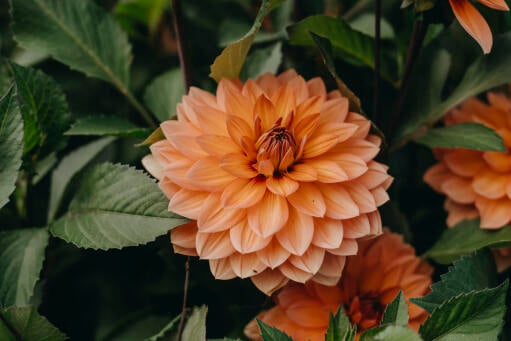 Hög, aprikosfärgad näckrosdahlia, med gula inslag i mitten av den stora blomman. Färgen är perfekt i kombination med blommor i rostiga och lite "smutsiga" färger. Fin i rabatt och kruka på balkongen.