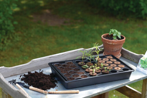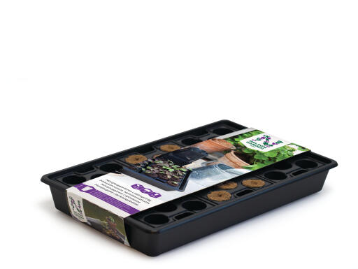 Odlingstråg och minipluggbrätten för jord eller odlingspluggar. Förenklar sådd, förodling och omplantering. Tråg av återvunnen polypropen (PP), brätten av polystyren (PS). 14 odlingspluggar av komposterbar kokosfiber, torv och näring ingår. 23 x 37 cm