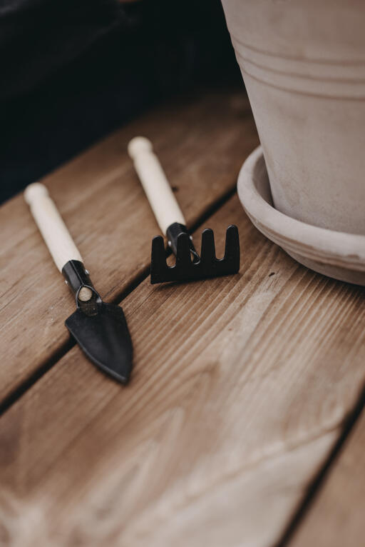 Snyggt omplanteringsset. Innehåller minispade, minikratta och prickelpinne.