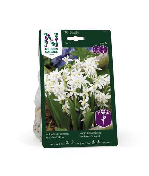 En mycket söt, vit sort av Rysk blåstjärna. Passar utmärkt till förvildning under träd och buskar. Fin tillsammans med vårblommor i andra färger t.ex. pärlhyacinter.