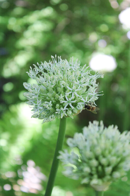 Praktfull jättelök med klotrunda, krämvita blomsamlingar likt svävande snöbollar i luften. De dekorativa bollarna, som består av små stjärnlika blommor, blir ca 15 cm i diameter. Anses vara mindre smaklig för rådjur, hare, kanin och sork.