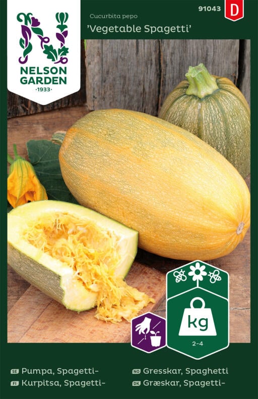 Spännande, gulfruktig pumpa, fruktköttet liknar och äts som spagetti. Kan lagras på sval plats, 1-2 mån. Trivs på en varm och solig plats i välgödslad och väldränerad jord. Behöver mycket vatten och näring.