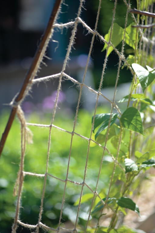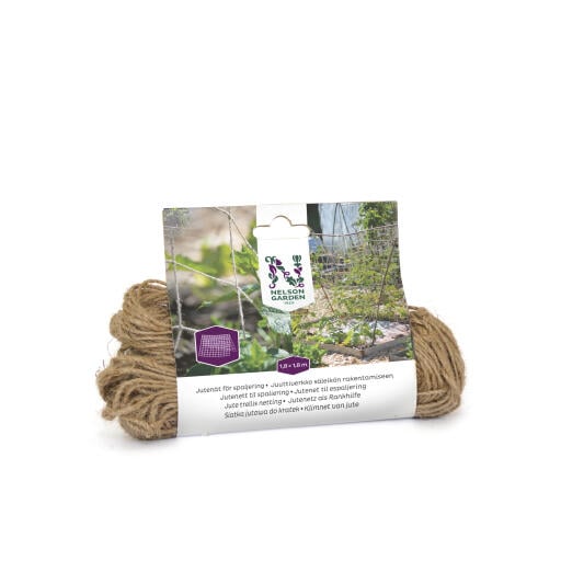 Dekorativt nät av jute för bönor, luktärter, krasse och andra klättrande växter. Monteras på valfritt stöd, t.ex. pinnar, käppar eller en stege. Kan komposteras efter användning. 1,8 x 1,8 m