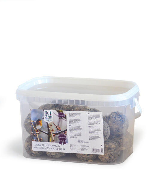 Talgboll som innehåller en extra hög andel jordnötter och solrosfrön och därmed har ett extra högt energivärde. En verklig festmåltid för småfåglarna. Utan nät och i hink, 30 st. 80 g