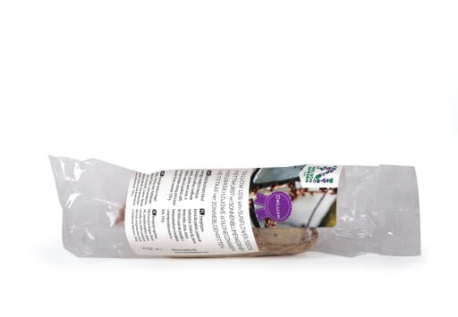 Energirik fågelmat, klar att hänga upp. Innehåller talg, solrosfrö, spannmål och frön. En 100 % naturprodukt med komposterbart snöre och bottenplatta från kokosnöt. 350 g