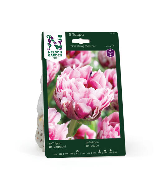 Låt dig bländas av en riktig skönhet! Denna pionlika tulpan med sina stora, fylliga blommor drar garanterat till sig uppmärksamheten i rabatten. Blombladen skiftar från purpur till svagt rosa med en nästan vit yttre kant.