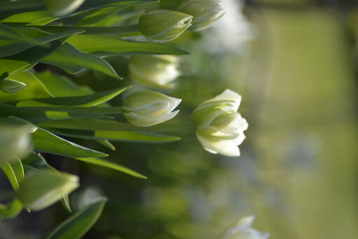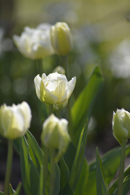 Likt en virvlande ballerina med kjol av tyll framför denna söta tulpan sin egen föreställning i rabatten. Färgen är ljust gröngul till gräddigt vit och blomman har en ljuvlig doft. Underbart söt tillsammans med narcisser och pärlhyacinter.