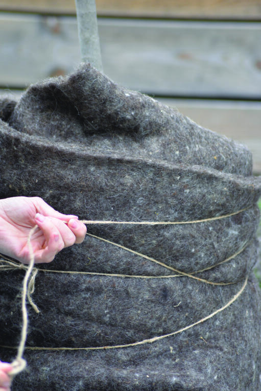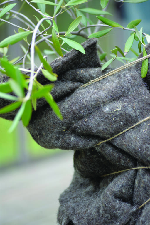 Ullmatta som skyddar växterna från uttorkning, ogräs, kyla och vatten.