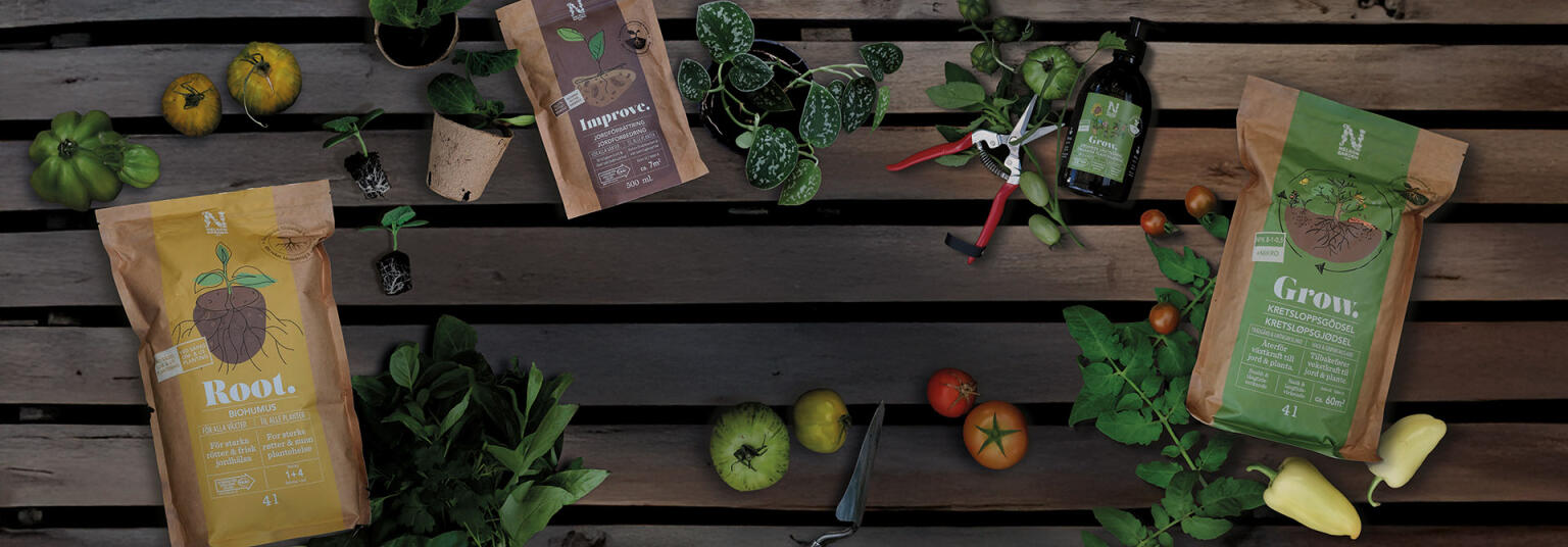 Produkter av naturbaserade råvaror, fyllda av nyttigheter som verkar flör en friskare och mer levande jord- och planthälsa.