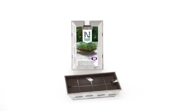 7. När groddarna vuxit färdigt behöver du inte skölja groddarna mer. Nu kan du vända på groddboxen och förvara groddarna i kylskåp i upp till 4–5 dagar.