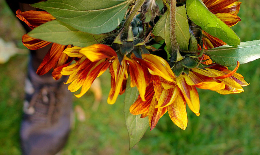 Tips! De höga solrosorna kan behöva ett stöd, t.ex. av en rejäl bambukäpp.