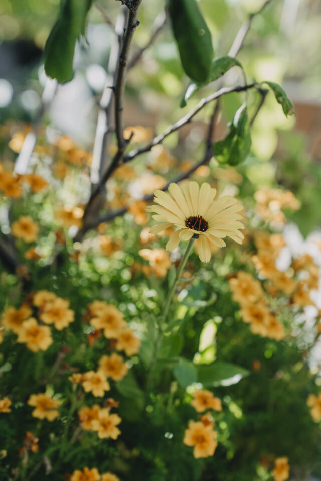 Blommorna från tagetes ’Strawberry Blonde’ är vackra och går att äta. Torka bladen och använd som dekoration i maten. Foto: Annika Christensen